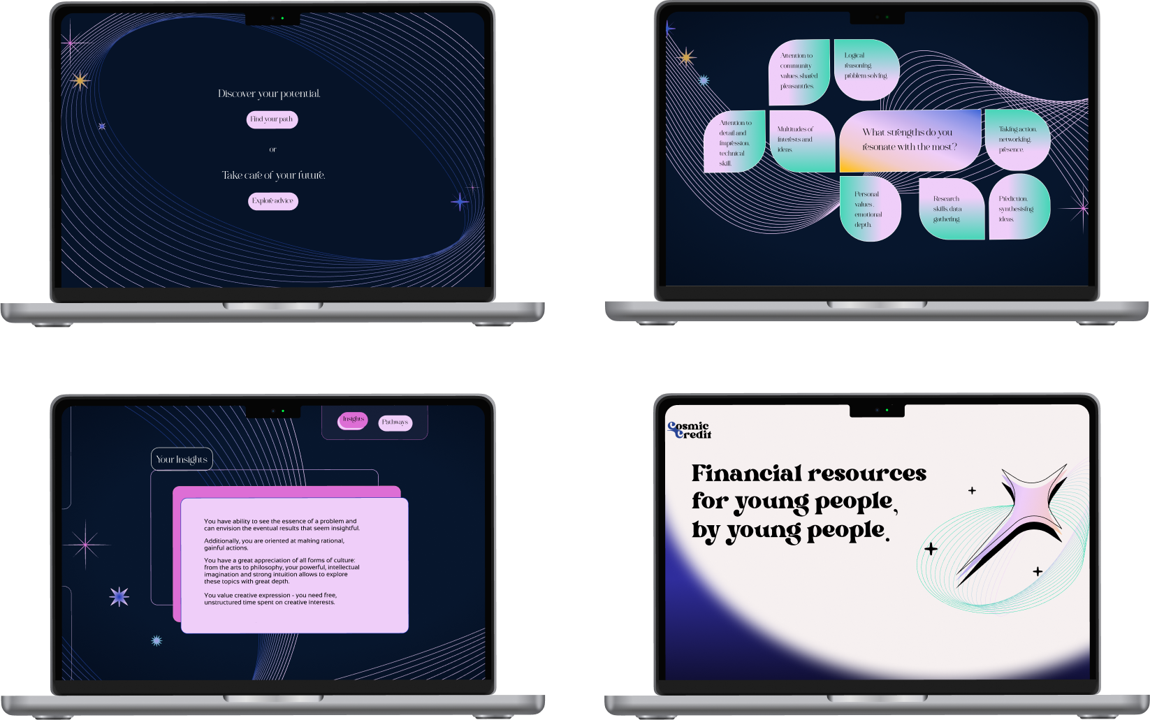 I first created a user journey that featured both personality based user input and interests based input, for copywriting reference I used university page subject categories and descriptions of Jungian cognitive function descriptions respectively.